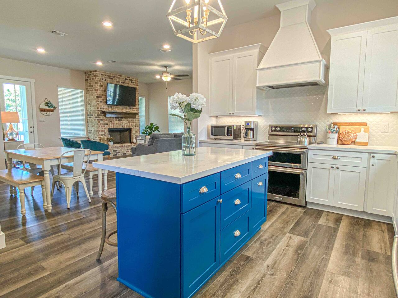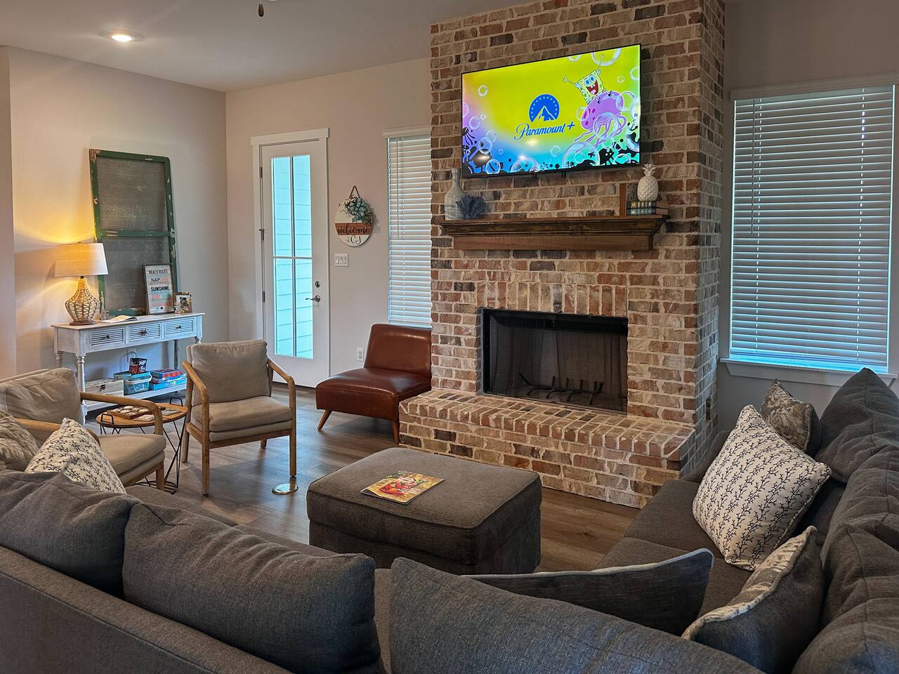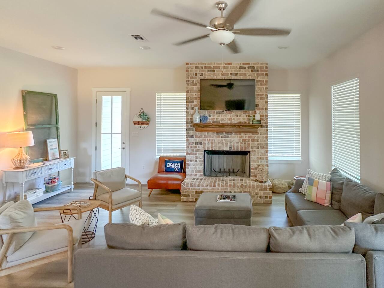 Welcome to The Coastal Jewel, your stunning and modern 5-bedroom, 3.5-bath Gulf Coast getaway that comfortably sleeps 14 guests. This bright, airy home is designed with a clean coastal theme, offering a spotless and comfortable retreat for easy travel days and cozy nights. Inside, you'll find a spacious layout that makes it easy to settle in, relax, and recharge. The comfortable living area, complete with a welcoming brick fireplace, is perfect for movies and conversation. Prepare delicious meals in the well-equipped kitchen, designed for more than just snacks. With thoughtful storage throughout, even extended stays feel simple and organized. This home is ideal for: Families: We provide a Pack ‘n play, high chair, baby monitor, safety gate, and children's books and toys to make your stay easier. These MUST BE REQUESTED prior to check in, and are available for an additional rental fee. Remote Workers: A dedicated workspace and reliable Wi-Fi ensure you can stay connected and productive. Groups & Extended Stays: Ample room and practical essentials like linens, towels, and starter supplies make everyone feel at home.