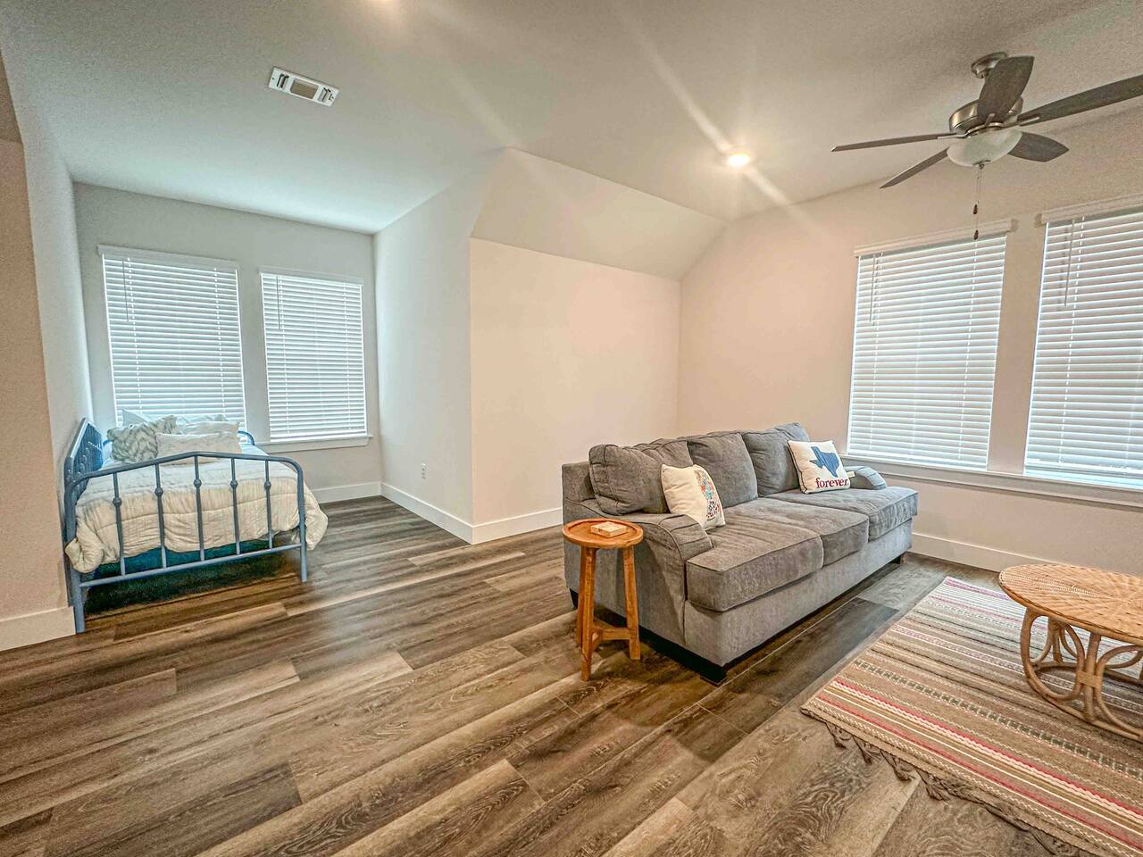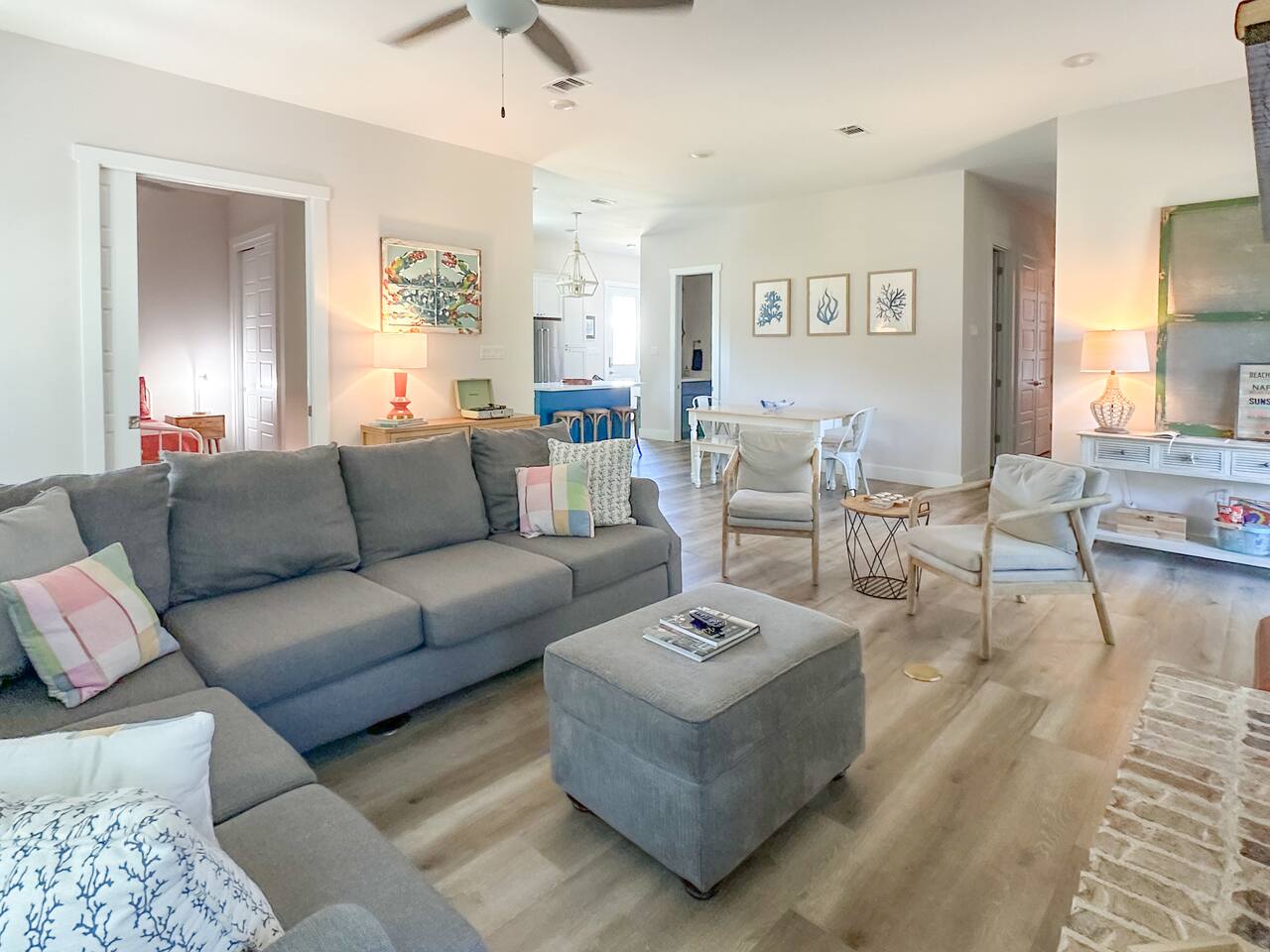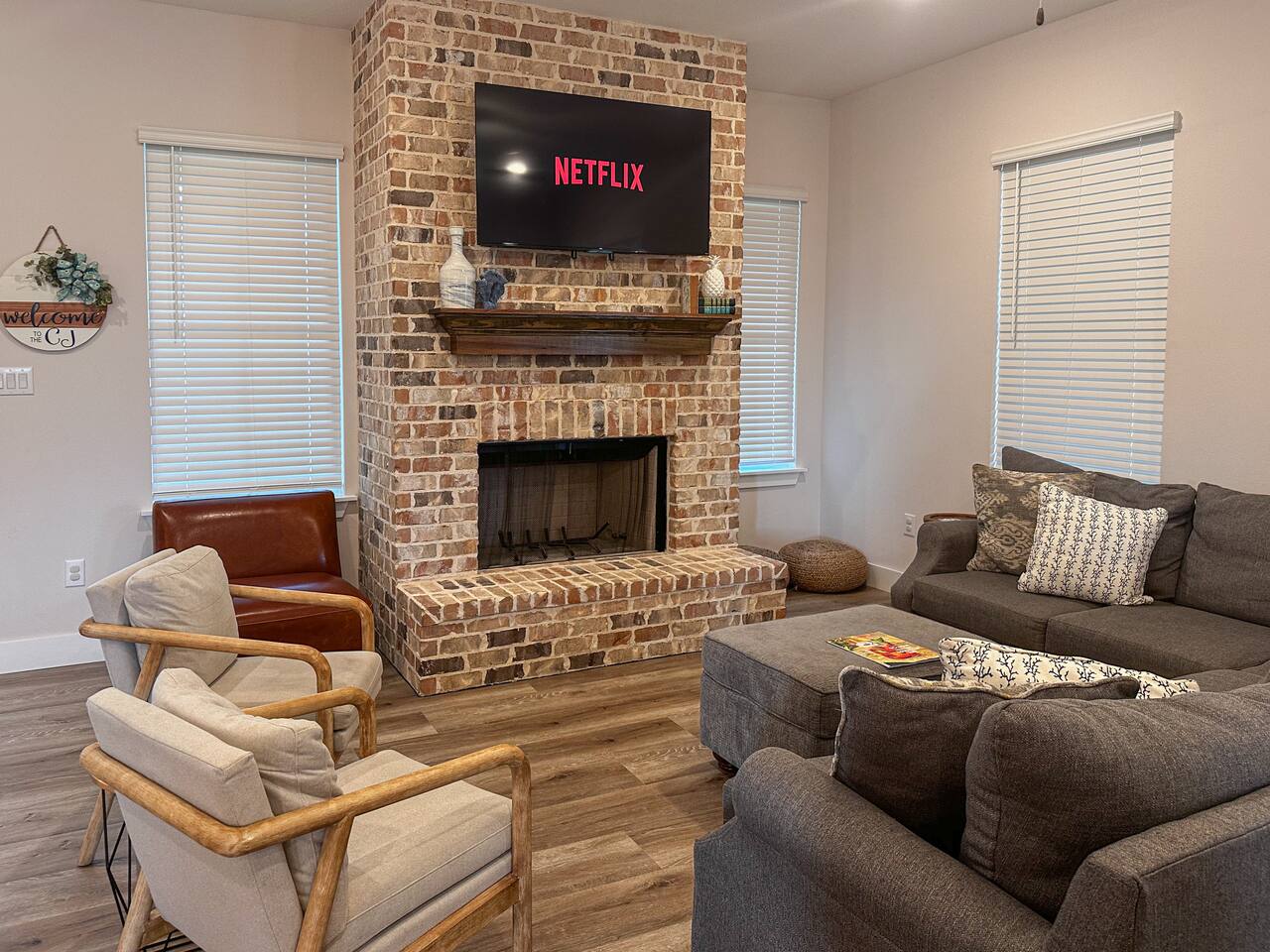 Welcome to The Coastal Jewel, your stunning and modern 5-bedroom, 3.5-bath Gulf Coast getaway that comfortably sleeps 14 guests. This bright, airy home is designed with a clean coastal theme, offering a spotless and comfortable retreat for easy travel days and cozy nights. Inside, you'll find a spacious layout that makes it easy to settle in, relax, and recharge. The comfortable living area, complete with a welcoming brick fireplace, is perfect for movies and conversation. Prepare delicious meals in the well-equipped kitchen, designed for more than just snacks. With thoughtful storage throughout, even extended stays feel simple and organized. This home is ideal for: Families: We provide a Pack ‘n play, high chair, baby monitor, safety gate, and children's books and toys to make your stay easier. These MUST BE REQUESTED prior to check in, and are available for an additional rental fee. Remote Workers: A dedicated workspace and reliable Wi-Fi ensure you can stay connected and productive. Groups & Extended Stays: Ample room and practical essentials like linens, towels, and starter supplies make everyone feel at home.