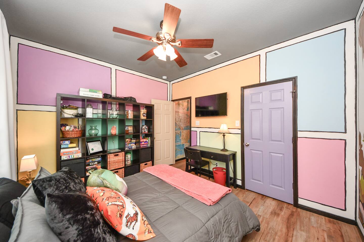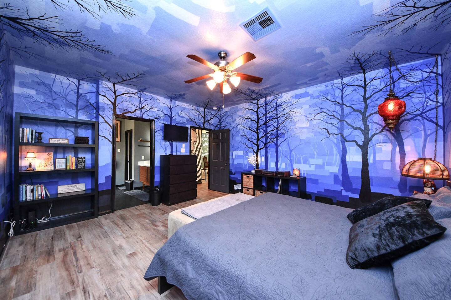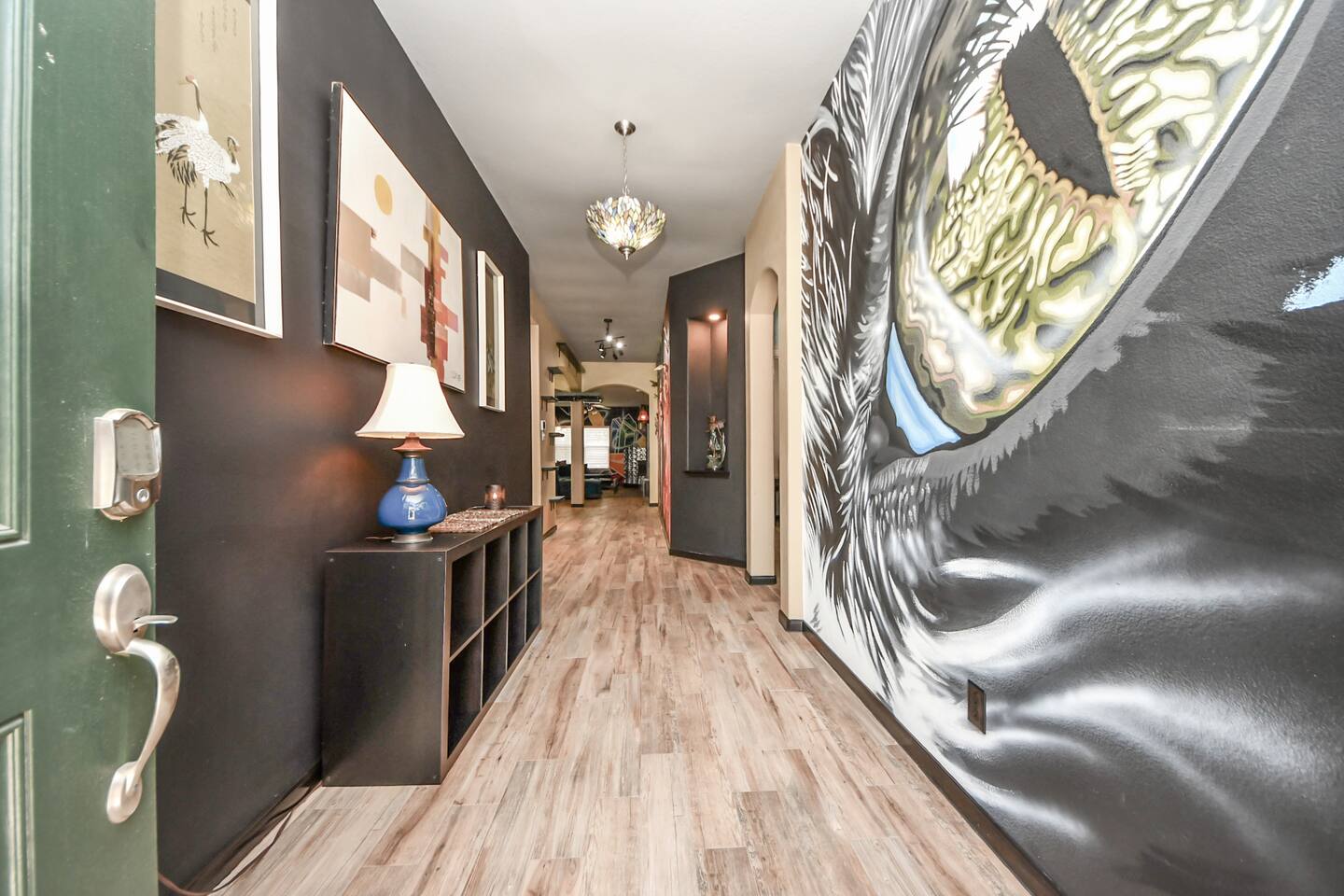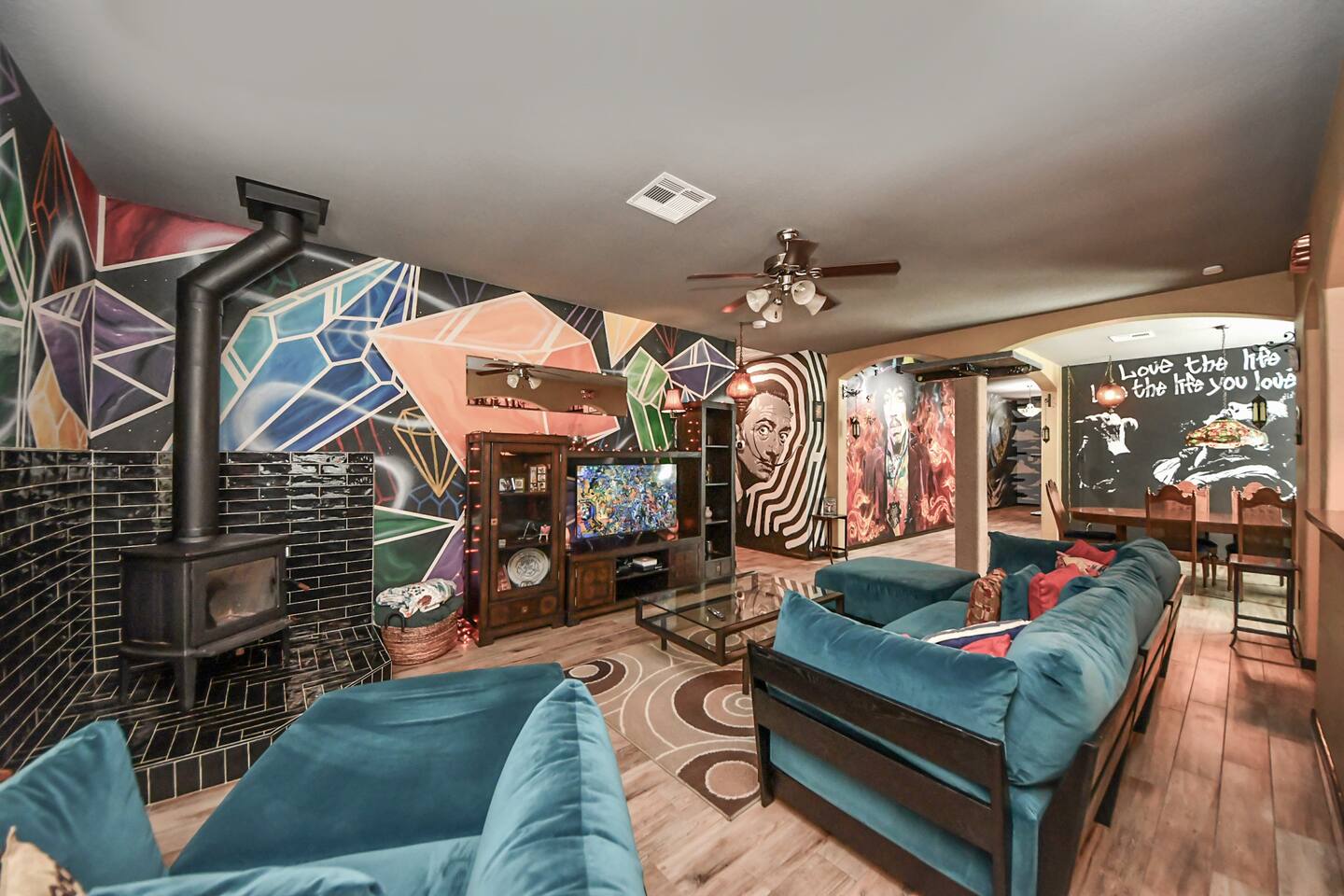 This one-of-a-kind home is more than a place to sleep — it’s an experience. Each room features hand-painted, immersive murals, bold design, and thoughtful layouts that make the home feel creative, comfortable, and memorable. If you’re tired of beige rentals and cookie-cutter spaces, this is your place. Perfect for families, creatives, extended stays, and guests who appreciate clean comfort with personality. Fully equipped kitchen, fast internet, 3 bedroom 2 full bathroom sensory friendly.