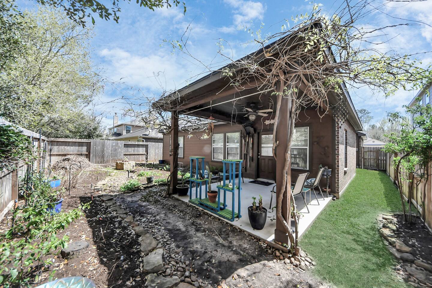 🛑 Important Notes • Decorative fireplace is not available for guest use • Garage access is not included (driveway parking available) • The home is professionally treated for pests; however, due to Texas climate and native landscaping, occasional insects may appear during hotter months This is a clean, well-maintained home located in a natural Texas environment. Neighborhood Sounds This home is located in a quiet residential neighborhood. Occasionally during daytime hours you may hear distant training noise from a nearby law enforcement training range. It is not constant and typically occurs during normal daytime hours. Most guests do not find it disruptive, but we like to be transparent so guests know what to expect. Backyard & Dogs The backyard is a butterfly garden with delicate plants. Because of this: • Dogs cannot be left unattended in the backyard • Dogs cannot dig or use the backyard as a bathroom • Guests must walk dogs in the neighborhood and clean up after them Many plants in the garden may be unsafe for pets. ⸻ Pets Guests should discuss pets prior to booking.